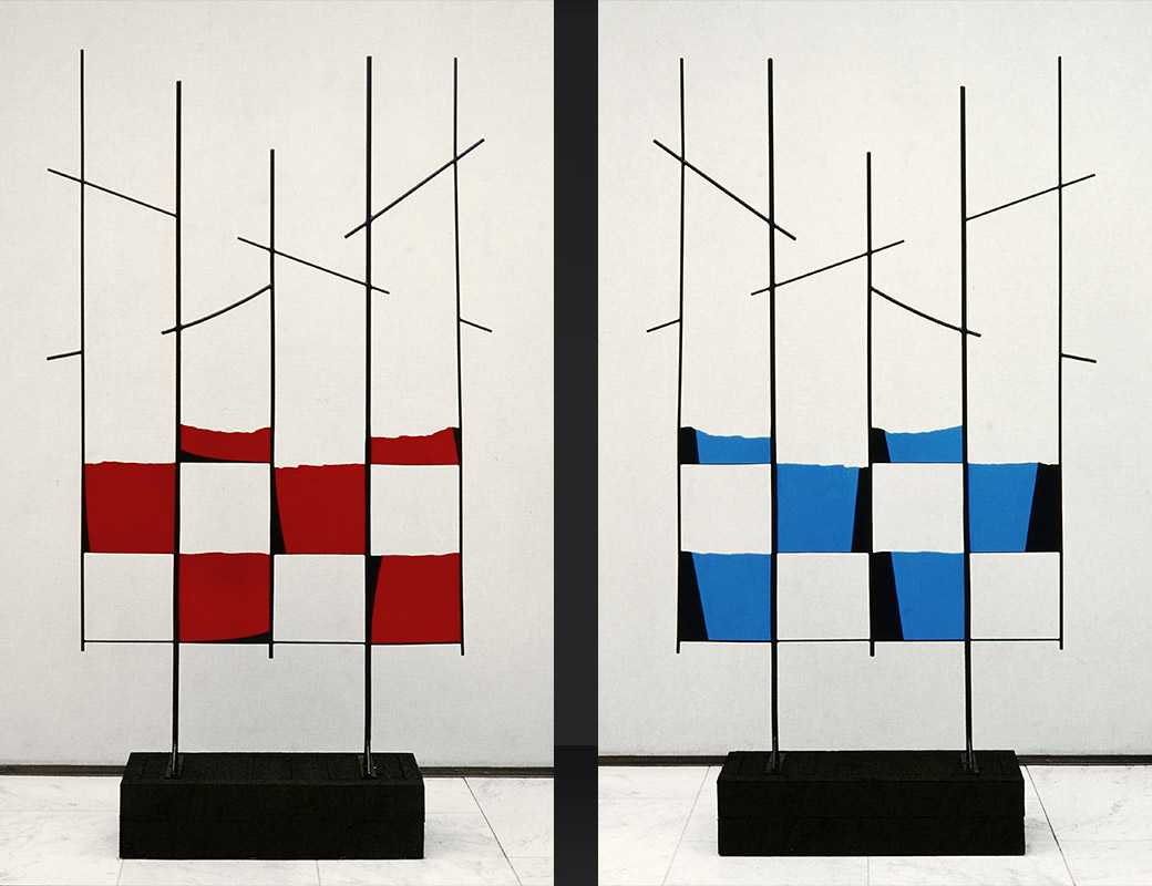 Veistos — maalattu teräs ja puu — 225 x 120 x 40 (cm)