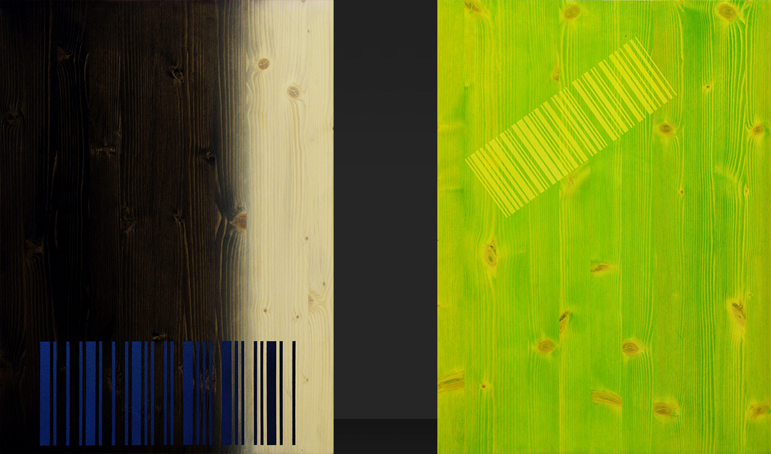 Code 00-S1-A1 & 01-S2-A1 — alkydiväri ja pigmentti puulle — á 56 x 42 (cm)