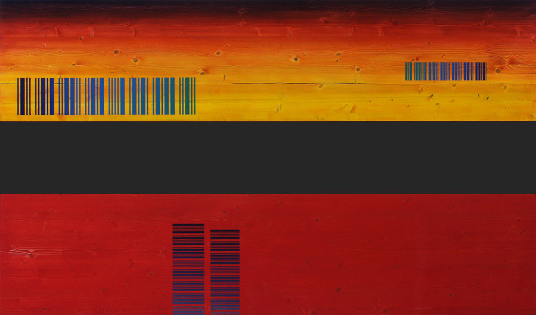 Mindscape 3 & 2 — alkydiväri ja pigmentti puulle — á 49 x 220 (cm)