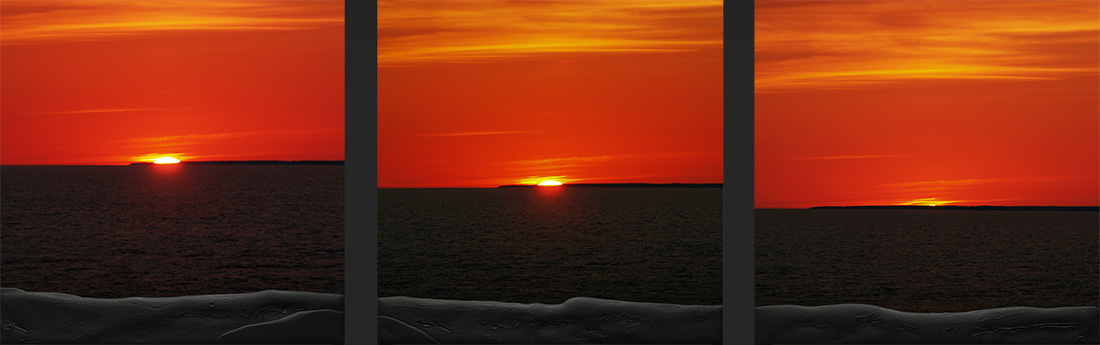 Sundown, osat 3-4-5 — akryyliväri ja valokuva hdf:lle — á 80 x 80 (cm) — 2007